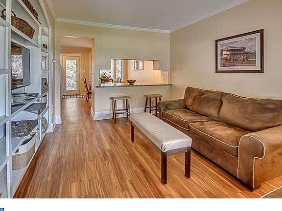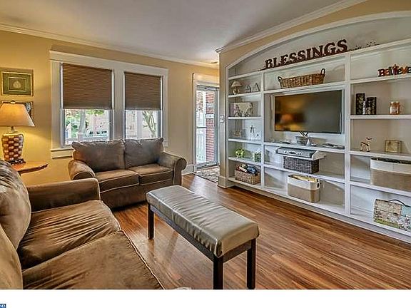 Impeccable and cool are the first 2 words that will come to mind when you enter this Bristol Borough row home. From the partially finished basement up to the bedrooms, this house is immaculate and wonderfully comfortable and cool from the great central air it features throughout. This quaint little property features beautiful laminate floors throughout the entire first & 2nd floor. The first floor features a newer kitchen with newer appliances and a living room with a wonderful built-in shelving area which is perfect for the flat screen TV. There is larger moldings and trim throughout and crown molding on the entire first floor. The 2nd floor has a completely remodeled bathroom and two nicely sized bedrooms. A partially finished basement allows for that additionally living space needed for a home office, 2nd TV room or a great play area. The entire home has recently been painted and there is literally nothing you need to do except unpack your clothes and enjoy your new home. You will not find a more well-kept and meticulously maintained home than this one.