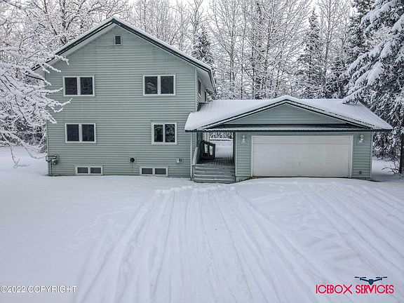Private estate in Palmer with 6 unrestricted acres has Bodenburg Creek running through, 2100sf 4-bed 2.5 bath main house with 1290sf unfinished basement. Pioneer cabin - could be AirBNB, huge Quonset shop, large pole barn/storage, several outbuildings. 6-acres is completely fenced and gated. Huge trees, beautiful creekfront, easy commute to Anchorage & Palmer. House has newer furnace with electricback up heat, new water heater. Home has been recently updated with new flooring throughout, new paint, new cooktop. All windows are newer, energy efficient vinyl. Cabin is rustic, with a full basement. Relax at the firepit positioned next to the creek. Shop is large Quonset-style with folding and rolling doors. Other outbuildings include a large pole-barn with all sorts of storage, old original cabin (used to be a cafe with drive through), various sheds and storage buildings. Property is unrestricted with commercial potential, perfect for your hobby farm, small business, etc.