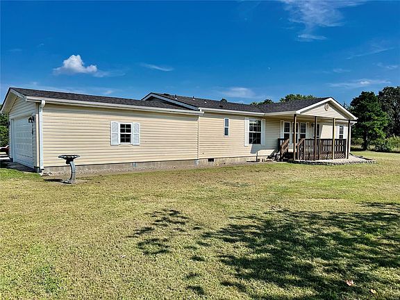 GREAT COUNTRY FEELING just a FEW MINUTES from TOWN !! This 4 BEDROOM, 2 BATH, HOME with an attached 2 CAR GARAGE offering 1568 FT. This manufactured home is on a PERMANENT FOUNDATION Situated on a Beautiful 3.12 acres Tract of land and its just off a BLACK TOP ROAD. The CATHEDRAL CEILINGS and OPEN FLOOR plan you'll LOVE! A LARGE KITCHEN with SNACK BAR, BREAKFAST TABLE AREA, additional DINING ROOM, plus a PANTRY. THE MASTER BEDROOM IS SEPARATED FROM THE ADDITIONAL 3 BEDROOMS, BEDROOM #4 WOULD MAKE A PERFECT HOME OFFICE. THIS HOME HAS NEWER SHINGLES & VINYL SIDING. THE LARGE REAR DECK and BACK YARD will BE PERFECT for your FAMILY GATHERINGS. A LOT OF STORAGE AVAILABLE with THE SEPARATE STORAGE SHEDS. THIS GREAT PROPERTY ALSO HAS "A STORM SHELTER " another ADDED FEATURE the ADDITIONAL 2 BEDROOM 1 BATH mobile HOME on a Separate newer LPP Septic system.