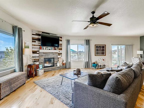 Stunning single-story custom home Priced to Sell in desirable Eagle Shadow boasts a spacious 4,401 total square feet with a finished basement on a corner lot of 1.15 professionally landscaped acre! This move-in ready home is light, bright, and airy with an open-concept living design including large windows which capture extensive views. Entertain family and friends in the sparkling kitchen with stainless steel appliances, granite countertops, pantry, oversized island and a roomy lounge/eat-in dining area. Relax in a luxurious spa-like five-piece master bath with a large soaking tub and soft lighting. Main floor office can easily be converterd to a bedroom. Beautiful finished basement to include a private 4th bedroom, 3/4 bath, Great room/Media Room, perfect for guests and entertaining. Enjoy Colorado outdoor living with both a covered front porch and an oversized covered custom patio. The oversized 3 car garage is fully finished with extensive parking. Numerous upgrades include professional landscaping, front and rear sprinklers, 95% drip system, maintenance free rocked ditch, pet friendly vinyl fence . Spectacular mountain views/sunsets! Conveniently located within walking trails and a park nearby, and only minutes to shopping, schools, DIA, and Denver. Pride of Ownership!!! MOTIVATED SELLERS*GORGEOUS HOME!!!