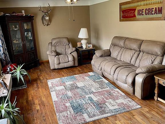 Quiet two bedroom one bath home with attached one car garage. Just outside of town on blacktop. This property has a large, fenced in, park like back yard. storage room, sun/mud room, and an additional storage shed outside! Additional Rooms: Mud Room, Sun Room