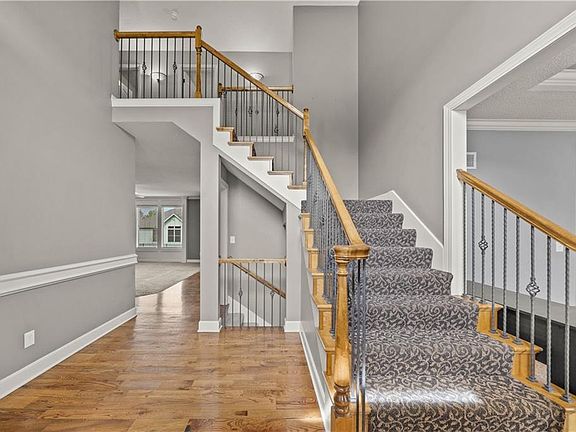 Move in ready! Located in the desirable neighborhood of Arbor Landing in Olathe, this METICULOUSLY MAINTAINED, one-owner home is certain to impress with its 2,609 sq ft to call your own! The heart of this home, the kitchen — with adjoining dining and living rooms — makes it ideal for gatherings. Enjoy an open floor plan with gleaming hardwoods in the kitchen, foyer and hallways. The spacious great room features a gas log fireplace, and three large windows which allow an abundance of natural light to flood into the room on sunny days. The formal dining room offers additional gathering space for friends and family. Convenient half bath on main floor. The primary ensuite is the perfect spot to unwind at the end of the day. Its decorative recessed ceiling, double vanities, separate shower, TWO walk-in closets, and a jetted tub complete your private “escape” space. Comfortable secondary bedrooms; one with an ensuite, the other two share a Jack and Jill bathroom. Laundry is conveniently located on the bedroom level. A three-car garage complete with new garage door openers in 2021 with MyQ technology. An expansive, full basement is waiting for your finishing touches! The backyard, with its new wrought iron fencing, is great for gardening, relaxation, or for kids or pets to play. Lots of NEW in this beautiful home to include HVAC, water heater, sump pump, kitchen sink, garbage disposal, faucets (in kitchen, half bath, and two upstairs bathrooms), dishwasher, refrigerator water valve, bathroom tile in upstairs bathrooms, garage door openers, exterior window shutters, exterior painting, can lighting, and more! The only thing it’s missing is YOU!