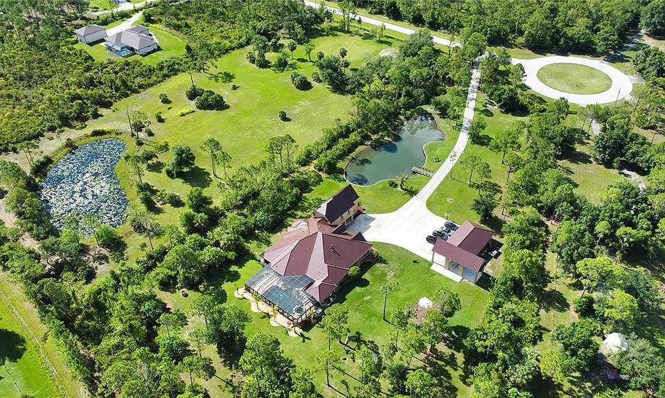 Discover serenity and sophistication in Prairie Creek, a distinguished deed-restricted horse community, where this magnificent estate sprawls across 5 acres of picturesque countryside. Boasting over 5200 square feet of luxurious living space, with 4 bedrooms, 4 1/2 bathrooms. This residence harmoniously blends modern amenities with timeless elegance. Car enthusiasts will appreciate the expansive 6-car detached garage and covered RV parking, offering ample room for vehicles, workshop areas, or additional storage needs. The home has impact windows and a new metal roof. 2 septic tanks, 2 wells, new hot water heater and full home RO system. There are 2 propane takes 110 gallon and a 500 gallon propane tank which is buried for the generator. Step into a world of leisure and entertainment with a sprawling outdoor oasis featuring a grand pool and spa, complemented by a vast outdoor kitchen and separate Tiki bar. Ideal for hosting gatherings or enjoying quiet evenings under the stars, this space seamlessly merges indoor and outdoor living. Inside, a high-end chef's kitchen awaits, equipped with top-of-the-line appliances and designed for culinary enthusiasts. Adjacent, a spacious dining area invites intimate family dinners or festive gatherings with friends. An additional highlight includes over 1100-square-foot 2nd floor entertainment room with a full bath, ideal for a studio, guest accommodations, a game room or a movie theatre adding versatility to this already impressive property. There is also a impressive great room overlooking the pool and lanai area. For the health-conscious, a private gym provides a dedicated space to maintain an active lifestyle without leaving home. Throughout, meticulous attention to detail and premium finishes create an ambiance of sophistication and comfort, perfect for those who appreciate the finer things in life. Located in Prairie Creek, known for its tranquility and privacy, yet conveniently close to city amenities, this estate offers a rare opportunity to experience luxurious country living at its finest. Whether seeking a serene sanctuary or an entertainer's dream, this property exceeds expectations. Schedule your private tour today and envision the exceptional lifestyle awaiting you at this remarkable residence. There is a separate 5 acres parcel available with the purchase of the house only for and additional $200,000.