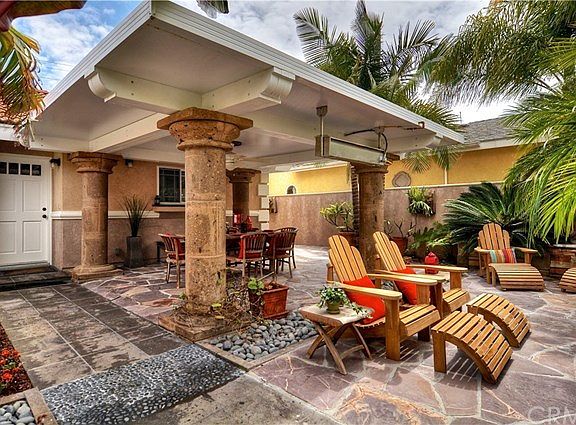 Absolutely Stunning Entertainer's Dream Home!This Exquisite 4 BD, 2 BA Single Story Home Near Huntington Harbour has been Completely Remodeled & Upgraded T/O Using the Finest Materials & Quality Craftsmanship!Over $80,000 Spent on the Courtyard,Stucco Walls is a Tuscan-Inspired Courtyard/Outdoor Living & Gathering Space w/Grand Canyon Gemstone Decking,Stacked Stone Planters,Outdoor Fireplace,Stone Columns Flank the Patio Cover w/Ceiling Fan,Heaters & TV Hook-Ups,Water Fountain,Reach-Through Window to Kitchen w/Sit-Up Bar + Tons of Sitting Space.The Exquisite Home Features Travertine & Hardwood Flooring,Smooth Ceilings,Recessed Lighting,Opening Skylights,Ceiling Fans,Dual Pane Windows & Sliders,Custom Casings,Raised Panel Doors,Crown Molding, High Base Boards,Designer Paint,Mirrored Closets,Whole-House Fan,Upgraded Electrical Panel. Master Chef's Kitchen w/Solid Slab,Granite Countertops/Backsplash,X-Long Granite Break Bar w/Pendant Lights,Slate Flooring,Top-of-the-Line Stainless Appliances,High-Capacity Exhaust Hood & Jenn-Air Range,Custom Cherry Wood Cabinets w/Glass Display Panels,Under-Cabinet Lighting & SS Hardware,52Bottle Wine Fridge,Built-In Granite Dining Booth. Living Rm has a Granite Gas Fireplace w/Fire-Ice Rock.Master Bath:Steam Shower w/Bench,Tile & Smooth Stone Inlay Floor/Ceiling.Main Bath:Porcelain Tile & Stone Vanity.Amazing Entertainer's Backyard w/Gemstone Patio/Walkway,Gardens, Fruit Trees & Palapa Covered Tiki Bar w/Stone Tiles Wet Bar & Abov