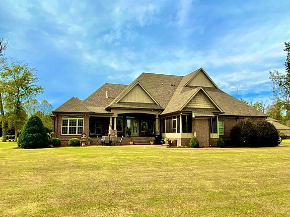 Natural Gas, Public Sewer/Water (Call/ text for appointment/questions: 256-497-3799) This Arts & Crafts styled sprawling ranch house plan on a large lot with over 760 sq ft of covered porches. Each room of this home design features elegant ceiling treatments ranging from 9-14 feet high. Every bedroom has a walk-in closet and an adjacent full bathroom. Includes large Bonus room, central vacuum system, whole-house audio, Safe room with 8 inch concrete walls/ceiling with venting and electrical ran inside. A three car garage floor plan with extra storage adds space for a third automobile, workshop, or golf cart. The large, gourmet kitchen of this house plan includes a walk-in pantry and a large central island. The spacious dining room offers large windows and a custom built-in cabinet for displaying fine china and storage space. . Custom-style details abound in this luxurious home plan with built-ins in the great room and dining room. The master bathroom is a spa-like retreat with dual vanities, a large walk-in shower, built-ins and a vaulted ceiling. The screened porch offers the best in year-round outdoor living with a fireplace. Energy Efficient with Foam insulation, tank-less hot-water heaters, and double pained windows. Sprinkler system covering entire yard and flower beds.