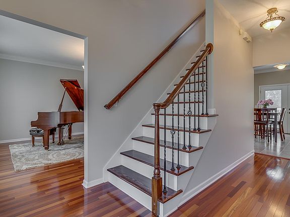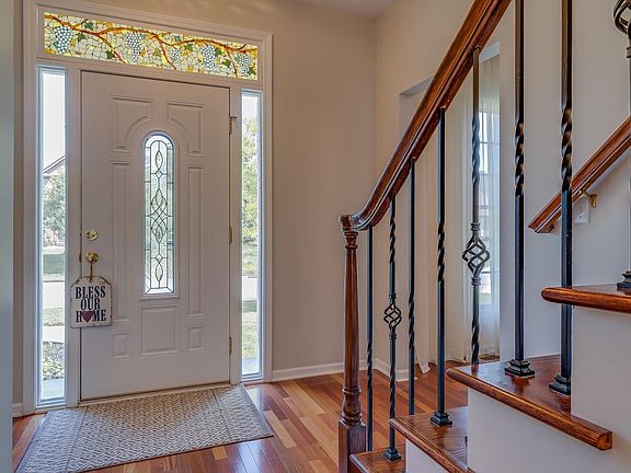 Do Not Miss this 5 Bedroom, 3.5 Bathroom home with a Walkout Finished Basement in Wellington Lakes, Granger! This central location features easy access to Notre Dame, Knollwood Country Club, Grape Road Shopping, South Bend and Mishawaka. In addition, the neighborhood is directly adjacent to the Granger Path's recreational trail. As you enter the home you will immediately notice the 9 Ft Ceilings and the Brazilian Cherry Flooring in the Foyer, Living Room and Dining Room. The upgraded spacious Eat-in Kitchen with Natural Birch Cabinets, Granite Counters, Stainless Steel Appliances, Spacious Eat-in Area with Access to the Elevated Deck. The Family Room features a Two Sided Fireplace facing the Family Room and the Living Room. The formal Dining Room is just off the kitchen and foyer. Molding in the Kitchen, Family, Living and Dining Rooms. 1st Floor Spacious Laundry and a half Bathroom. Upstairs features a Vaulted Master Bedroom with a Large Master Bathroom featuring Two Separate Sinks and Two Walk-in Closets, Corner Whirlpool Tub and a separate Shower. 3 other Bedrooms and a Spacious full Bathroom with a Large Vanity. Walkout Lower Level featuring a Family Room, a Full Bathroom and the 5th Bedroom. Lower level is plumbed for a kitchen. Recent updates include furnace/AC (2018), Water Softener and R/O system (2016), fresh paint in much of the home, etc. Monthly Average Utilities: Gas-NIPSCO-$64 / Electric-AEP/I&M-$95.