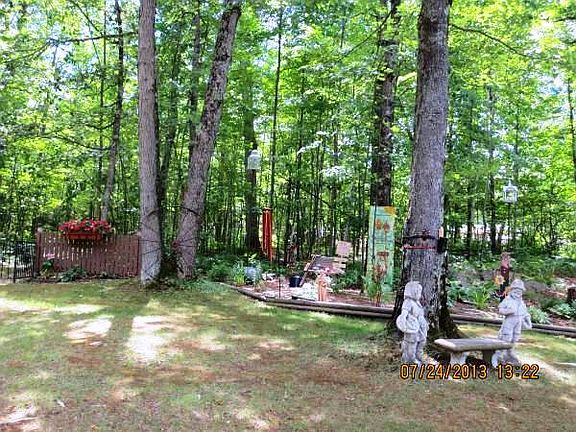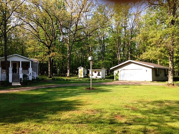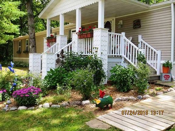 Charming newer 16x80 mobile has a darling Victorian front porch, huge 12x24 composite deck in back, 2BD,2BA, master suite, central air, large 24x32 detached garage, gingerbread shed & wooded yard. Brand new windows thru-out, in popular Crooked Lake area & National forest across the road. You must see this one..it is turn key & ready to go!