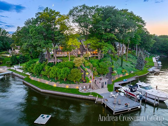 INCREDIBLE SPRING LAKE VIEWS, VALUE, AND OPPORTUNITY! Live Lake Life to the fullest at this fantastic lake home strategically situated on a gorgeous peninsula overlooking Spring Lake. Be awestruck by the enormous lake views. Watch day dawn, people play, or eagles fly. Savor coffee from the Miele built-in coffee maker in the heart of the home, the custom kitchen, complete with Wolf and Subzero appliances and a large granite island. Great for food prep, entertaining, or simply enjoying the tremendous lake views. Need more privacy, retreat to your private lakeside deck off the marvelous primary bedroom suite or into the cozy reading nook. Venture outside to enjoy the lake. Cruise Spring Lake or Lake Michigan from your 50ft+ permanent dock with 9000lb boat lift and extra slip. Head down to your private marina on 256' of prime waterfront complete with a deep-water dock capable of handling up to a 60-foot motor yacht. The 9000lb boat lift, 220V power, expansive over water deck, lakeside storage shed with running water, electricity, ice maker and stereo scream FUN FOR EVERYONE! De-stress in your expansive home gym or family sized sauna. Spend the afternoon enjoying a fire in front of the two-story natural stone fireplace or enjoying puzzles and games with family and friends in the lakeside three season room. With plenty of room, this clean, meticulously cared for lake home in the Spring Lake School District has it all, including: heated tile floors, custom garage/man cave with room for six collectible cars, and an oversized garage door for an RV or large boat; paved golf cart lake access path; gas fire pit, full house generator; walk in gun vault/safe room, security system, bonus room with theatre, pool table, wet bar, gaming area and overflow accommodations, and plenty of storage and parking for all. A Fantastic lake home to make memories with family and friends! Come take in the views and see it for yourself!
