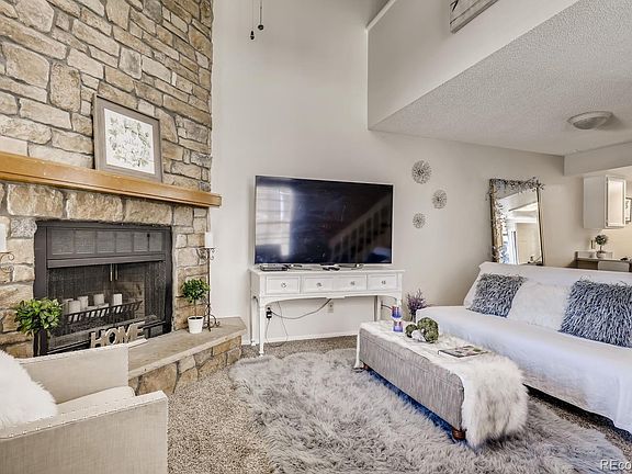 Two-story 1 Bedroom, 1 Bath end Unit Updated townhome in the Americana Community. The main level features a large Family room/ dining area with floor- to -ceiling rock wood-burning fireplace and vaulted ceilings! Lots of Natural Light and windows. The kitchen has an oversize breakfast countertop. Privet backyard area with deck and AC unit. The upstairs 1 loft bedroom with a full bathroom. Laundry closet in the main level with washer and dryer included. Newer refrigerator. Close to Alameda Shopping Center, near to Buckley. Low HOA fee. Additional storage in large crawl space with indoor access.