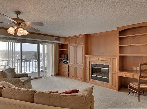 One of only two double units in complex, home enjoys a wonderfully spacious and open layout with stunning vistas over Lakefront Park. Maple cabinetry & HW floors, FP, SS appl., center island kit.,loads of storage & built-ins. Walk to shops/restaurants!
