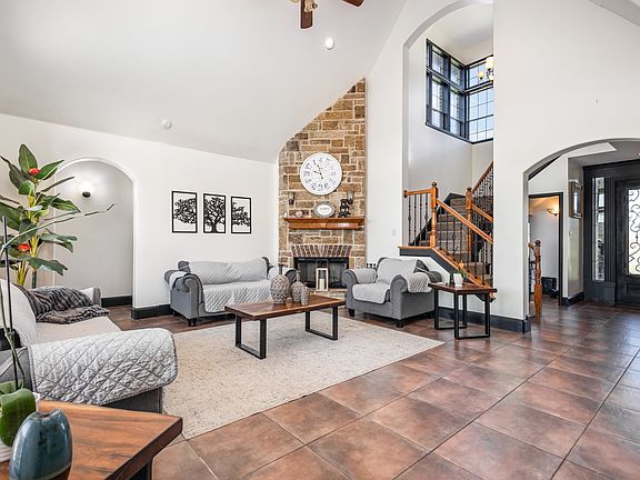 Exquisite Custom 1-Acre Oasis with Sparkling Pool, Relaxing Owner's Retreat & First-Floor Guest Suite! Escape the hustle and bustle without sacrificing convenience in this stunning family home, perfectly situated on a spacious 1-acre lot. Boasting a beautiful blend of stone and brick architecture, this property offers a serene retreat just minutes from shopping, local schools, restaurants, and with easy access to major highways—making your commute a breeze. Step inside to discover sun-filled living spaces highlighted by soaring ceilings, expansive windows, and an open layout designed for both everyday living and entertaining. The chef’s kitchen features granite countertops, stainless steel appliances, and a breakfast bar flowing seamlessly into the family room with a wall of windows framing picturesque backyard views. Highlights of the home include the XL Owner's Suite with its own patio entrance, huge luxurious bathroom, and custom-designed closet. The large, private, 1st-floor guest suite, complete with a spacious closet and an en suite bath with extended vanity is perfect for hosting family or guests. Upstairs, additional bedrooms and flexible living spaces offer room for everyone. Custom features and upgrades throughout! This home delivers the best of both worlds: the peace and space of country living with the ease and convenience of city access. Sellers also offering $10k towards buyer's loan costs!