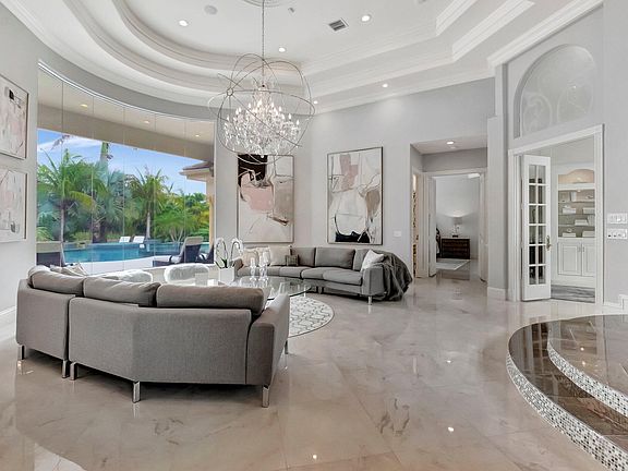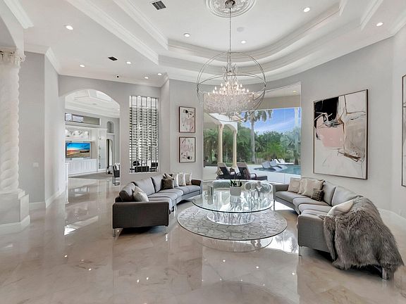 Exquisite Estate Home on over 1 acre Located in a 24hr man gated community. Specular Lake lot on private cul-de-sac streetTwo driveways. 4 car garage. Recent upgrades; Brand new roof in 2023 & New impact windows in 2017. Home features 6 Bedrooms, Master and junior master bedrooms on first floor, 6 En-Suite bathrooms plus 1 half bath. Interior floor plan is bright and spacious, with neutral colors throughout. Gorgeous kitchen designed with Mystery white honed marble on the kitchen island, Built in appliances/ and Thermador gas range. Huge covered outdoor space perfect for entertaining, Huge New infinity edge pool/ Spa, Heated, Salt System with large sun shelf completed in 2023. Bubblers in sun deck and gutter. Six-foot diameter fire bowl. Two heaters - new 140 btu electric heater in 2023, 400,000 btu propane heater for fast heating of pool and / or spa, Jandy LED lights, Aqualink system.