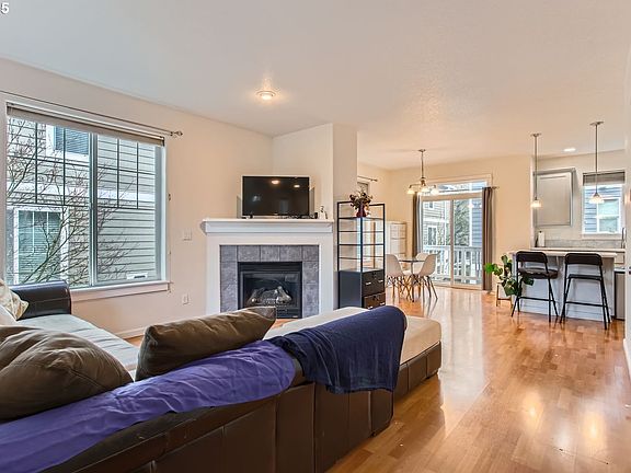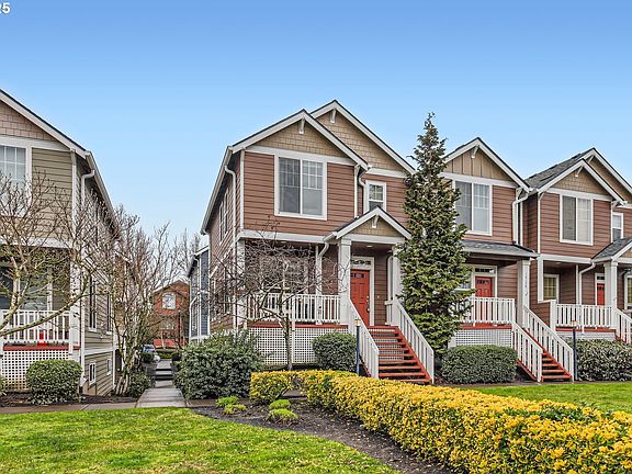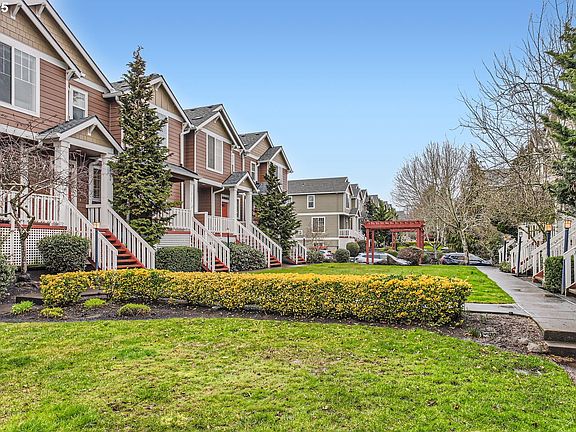 Beauty and convenience is in this end-unit townhome at Merlo Station! New carpet in 2025! New roof in 2024! Tons of natural light fills the home. Open floor plan on the main level has laminated flooring, gas fireplace with tile surround and mantle. The updated kitchen has quartz counters, stainless steel appliances, marble backsplash, island with eat bar, pantry, eat area with built ins and slider to the deck. The Primary Suite has bath with walk-in shower, walk in closet & vaulted ceilings. Lower level bonus room is great for an office or extra storage. Enjoy the front porch which faces the park-like common area that surrounds the property. Great convenient location, just minutes to Costco, Fred Meyers, Max line, Nike Campus! A must see!
