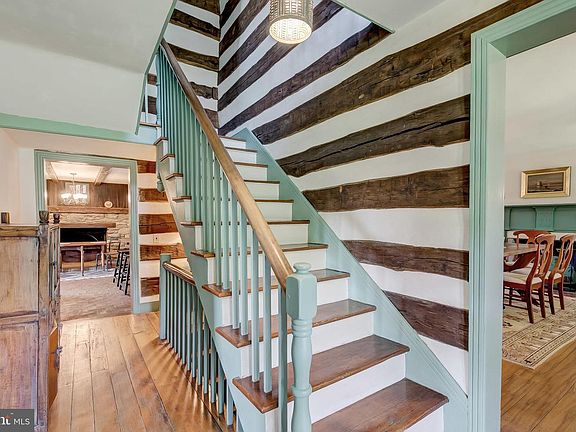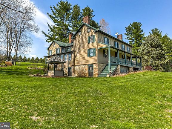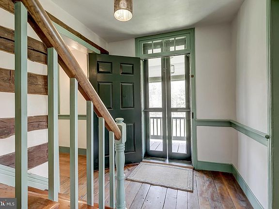 Complete 1979 renovation, expansion and restoration of this circa 1830 Baltimore County farmhouse. Restored chestnut log interior walls in many areas, vintage flooring and staircases, wood burning fireplaces and many original window panes. Foyer with open staircases to upper and lower levels, formal Living Room and Dining Room- both with fireplace. Eat-in country Kitchen with brick floor, reclaimed wood cabinets and decorative stone fireplace. Family Room with fireplace, Sunroom with brick floor, main level Bath and Laundry Room. Master Bedroom with fireplace, walk-in closet and Bath plus 3 additional large Bedrooms, Sitting Room with loft and Hall Bath. Walk-out Lower Level Recreation Room with fireplace and Wine Room. Restored log and stone smoke house. Bank Barn with 4 stalls and fenced paddock, additional paddock, Garage/Garden Shed, Workshop with Tack Room, 1 acre spring-fed Pond with Springhouse, all on 20 bucolic acres with amazing vistas. The property may offer advantageous preservation-based opportunities.