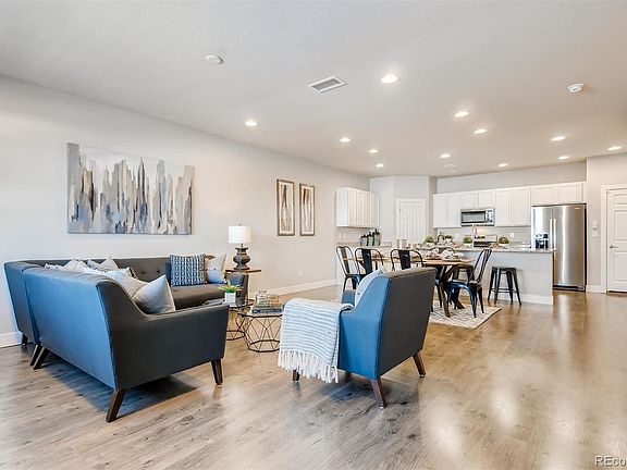 A lovely North Denver location awaits in Gateway just minutes to DIA and a short commute Downtown. Opt outside on a day trip to the Rocky Mountain Arsenal National Wildlife Refuge and enjoy award winning fishing, 10 miles of hiking and biking trails, and driving tracks where you can view many of America's most famous prairie wildlife including bison, deer, and many species of birds. Gateway also offers a multitude of community parks and tot lots and is just minutes to Parkfield Lake Park as well. Cross over Pena Boulevard and you arrive at Green Valley Ranch to the East offering a hometown beer garden and endless casual dining options. To your West you can take in abundant entertainment options in Northfield at Stapleton including a robust Harkins Movie Theater, many higher end casual dining options like Red Lobster and an outdoor shopping mall with all of your favorite brands. As you arrive at the community you will take notice of the great care and immaculately maintained grounds and shared green spaces. A lovely modern style row-house greets you to a private front porch and patio then come on inside crossing through an appealing brick lain entryway and fashionable accent door. An open concept great room greets you nicely connecting the living and dining rooms to the kitchen making this space an entertainer's paradise. The over-sized attached 2-car garage is located toward the back of the home just off of the kitchen. Upstairs a spacious and inviting master suite awaits adorned with private en-suite bath and massive walk in closet. Three additional bedrooms and a secondary full bath are also located upstairs with all bedrooms conveniently located on the same level of the home for your peace of mind. The laundry closet is also perfectly placed upstairs completing the upper level of this thoughtful floor plan designed with your every lifestyle convenience in mind. Recently built and lived in for just two short years, you can have nearly new today without the wait!