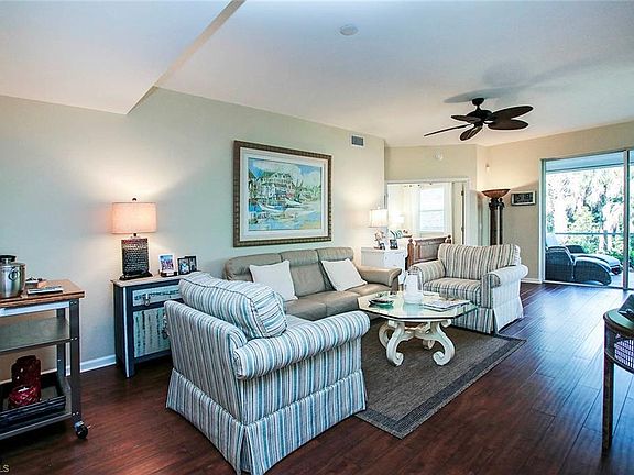 WOW! Remodeled and like new.. you will love the updates to this ground level condo located on a private cul-de-sac in Crown Colony. The kitchen has the popular open kitchen with white cabinetry, granite countertops, and newer s/s appliances. Both bathrooms have been updated with new vanities, quartz tops, new shower doors, even the toilets have been replaced! Beautiful wood like flooring in all 3 bedrooms, plantation shutters and serene decor throughout. Electric hurricane shutters on the spacious screened lanai and impact windows elsewhere for peace of mind during storm season. The A/C was replaced in 2018. AND, this home is being offered turnkey FURNISHED, ( a few artwork exclusions) ready for you to start living the Florida lifestyle. Those furnishings are all newer and lightly used. This condo does have golf membership which could be included in the purchase, ask for details. Crown Colony is a 24 hour guard gated community and your fees include the X-1 cable/internet pack, water & sewer, and community pool,spa, tennis and fitness. Located near beaches, dining and shopping- this is a great location!