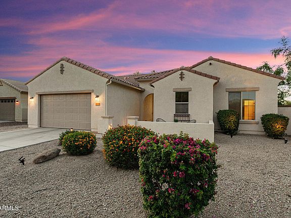 Privacy and tranquility await in this highly desirable Palm Valley Phase VIII residence, perched on a premium corner lot adjacent to a lush greenbelt and park. With maximum privacy and no traffic noise, this home features an open floor plan and a spacious living area that's perfect for both everyday living and entertaining. Thoughtful upgrades include an iron-screen entry door, ceiling fans in the great room and master bedroom, and a full 3-car tandem garage offering abundant storage. Step outside to an expansive backyard ready for your dream pool and custom landscaping, with plenty of room to make it your own. Conveniently located just minutes from the I-10 freeway, top-rated schools, and the beautiful new Goodyear Civic Center. Enjoy nearby amenities such as a children's park, Goodyea Park with pool and hiking/walking trails, and soon-to-open Trader Joe's and Buc-ee's. To help you settle in, the seller is offering a buyer credit for carpet replacement. This is your chance to own a quiet, upgraded home in one of Palm Valley's most sought-after phasesdon't miss it!