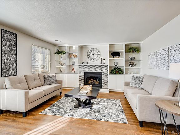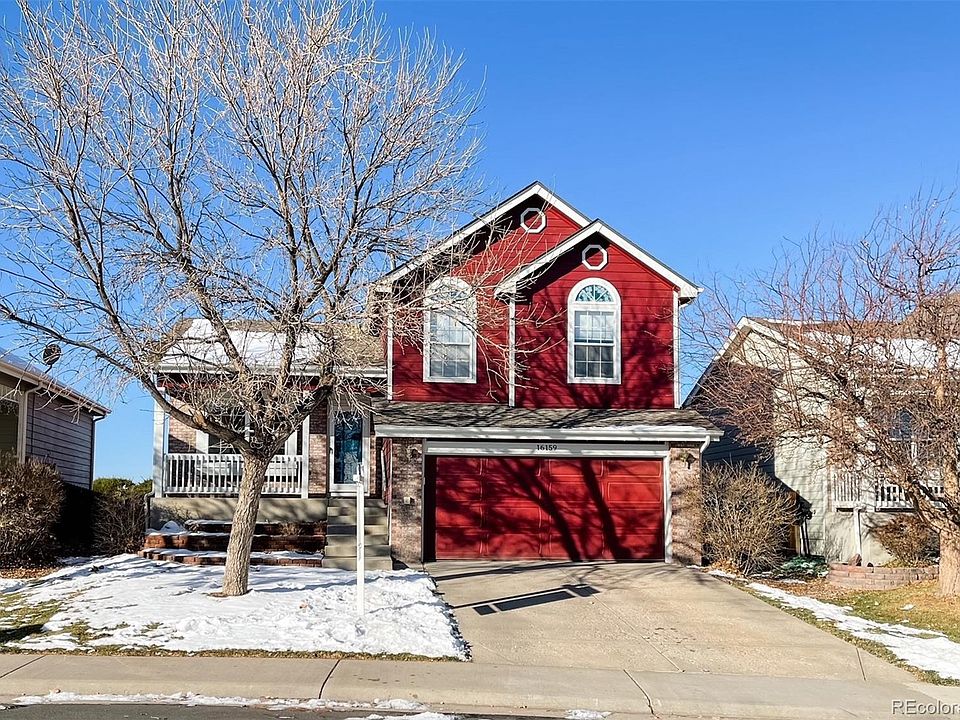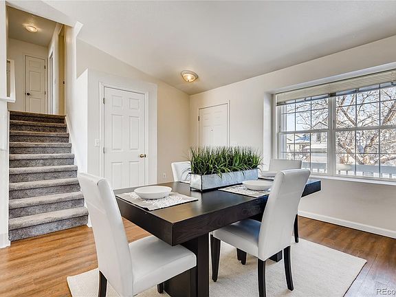 You'll fall in love with this home the moment you see its curb appeal! A welcoming front porch greets your guests before coming inside to a light and bright home.The flex space at the entry is perfect for a formal living room, dining room, office, piano room... the possibilities are endless. An eat in kitchen with stainless steel appliances (refrigerator included!), extensive cabinetry and counter space, and a real pantry for additional storage looks out into both living spaces. The family room is warm & inviting with custom built in bookcases surrounding a cozy gas fireplace. Wide plank flooring flows through the entire main level, with plush carpeting in the upstairs bedrooms. Upstairs, the Owner's suite features vaulted ceilings with large windows that allow natural light to flood the room, an ensuite bath, and huge walk in closet. The two secondary bedrooms are light & bright with gracious closet space. In the basement you'll find a 4th bedroom with built in office desk, as well as the laundry room with front loading washer & dryer - included! Walk out into the beautiful, fully fenced backyard with a large deck for entertaining. Irrigated planter boxes allow for a home garden all summer. The Bradbury Ranch neighborhood is packed with amenities like a community pool, park, and tennis courts. Just a few minutes from all the shopping and dinging of Downtown Parker, or head just a few minutes west to the highly acclaimed Park Meadows Retail Resort.