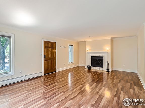 Not your ordinary Townhouse style condo. Very charming with loads of character. Gorgeous brick building. Beautiful condo has high ceilings, cove molding, 6 panel doors, wood burning fireplace, large windows and Mountain views. Patio to enjoy the outdoors and garden in the front. No units above or below. Fantastic location where you can walk to Pearl street and is close to the University. Washer and dryer in the unit. Underground parking garage has a second parking place for $10 a month. Large storage locker.