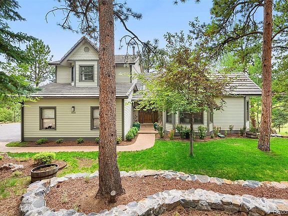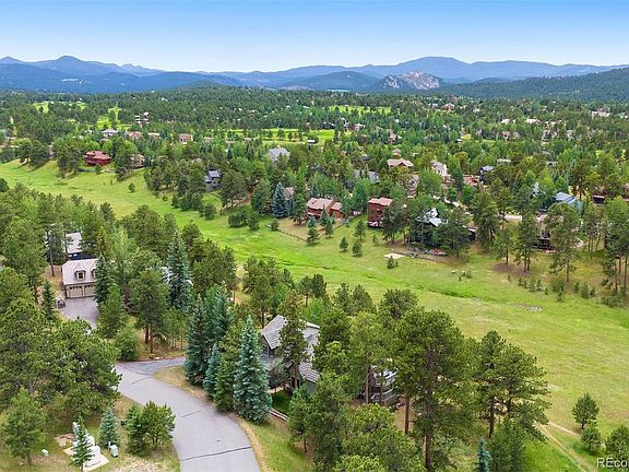 Situated on one of the more private lots in the Ridge at Hiwan, 1616 Ajax Lane exudes old-school Evergreen charm. Developers notoriously build the first homes of their vision on the most desirable lots, and this is one of the originals! The property is bordered on the west by a broad valley of open space and trees for privacy. The south-facing backyard of the .68-acre lot seems larger by the adjoining open space with numerous trails and bike paths, literally a step away, for outdoor enthusiasts and the incredible views of Bergen Peak. Pride of ownership is seen in the manicured front lawn. All of the amenities of Bergen Park, which leads to Elk Meadow, retail/boutique shopping, locally-owned restaurants, and a state-of-the-art rec center are within walking distance adding to the allure of Ajax Lane. The three-level home offers slightly lesser square footage, which is currently more desirable and popular for all phases of life. The highly sought-after main floor Primary Suite with bonus office space and a private small deck is fantastic! The main floor favors a more traditional layout from a combined formal living room with bay windows that open to the dining room. The kitchen flows to the family room and shares a walk-out to a large deck with dining space, seating/entertaining space where many beautiful sunsets have been enjoyed. An optional second Primary with an ensuite bath and a third bedroom with an ensuite is upstairs. The main floor family room and downstairs recreation room both have large stone wood-burning fireplaces, adding warmth to those Rocky Mountain winter evenings. The lower level walk-out also offers a bright sun-filled large fourth bedroom, craft/bonus room, laundry, bathroom, and a second deck with a hot tub for relaxing and star gazing. Shaker craftsmanship throughout this well-maintained, one-owner home, makes it a comfortable and quiet mountain abode. Visualize your touches on this perfect offering, and be the next to stay for years to come!
