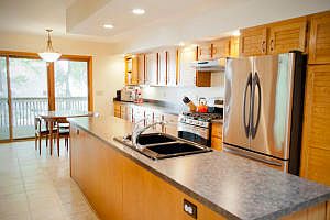 Nearly 3800sf of finished living space in this custom, 4 bedroom, 3 bath, contemporary styled home. Large southern exposure windows in almost every room provide natural sunlight. Features include many recent updates, two fireplaces, sunroom, and completely dry basement. A rare find in a highly desirable neighborhood with no through streets. Access to 3.5 mile wooded running path and golf course.