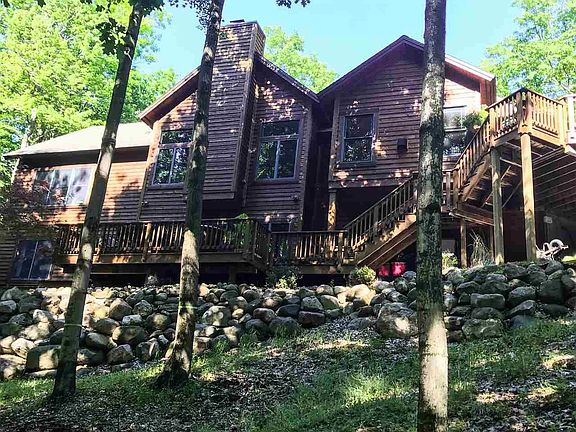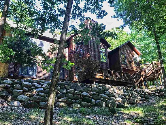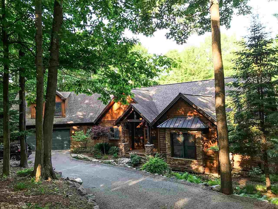 Ultimate luxury defined in this Town and Country Northern Michigan rustic style home situated on a 2+ acre lot with seasonal views of Lake Michigan. Located within the wonderful private community of Birchwood Farms Golf and Country Club and a 5 minute drive from downtown Harbor Springs. This fabulous home features high end finishes including granite counter~tops, Ledgerock back~plashes and fireplaces, Australian Cypress wood floors and extensive landscaping. A vaulted/Beamed ceiling in the living room features a floor to ceiling wood burning fireplace. The large gourmet kitchen has granite counters and island, stainless appliances, cherry cabinets, gas Jennaire stove/indoor grill with pot filler above, double oven, an abundance of storage and a charming sitting area with a cozy fireplace. Additionally, a main floor master suite, guest bath, office/den, laundry room. The wonderful large room above the garage can be used as a family room, office, video room, or game room. The lower level adds three bedrooms, bath, common living area and tons of storage space. The dramatic exterior is graced with multi~levels of decking and a fun fire~pit for evening gatherings..