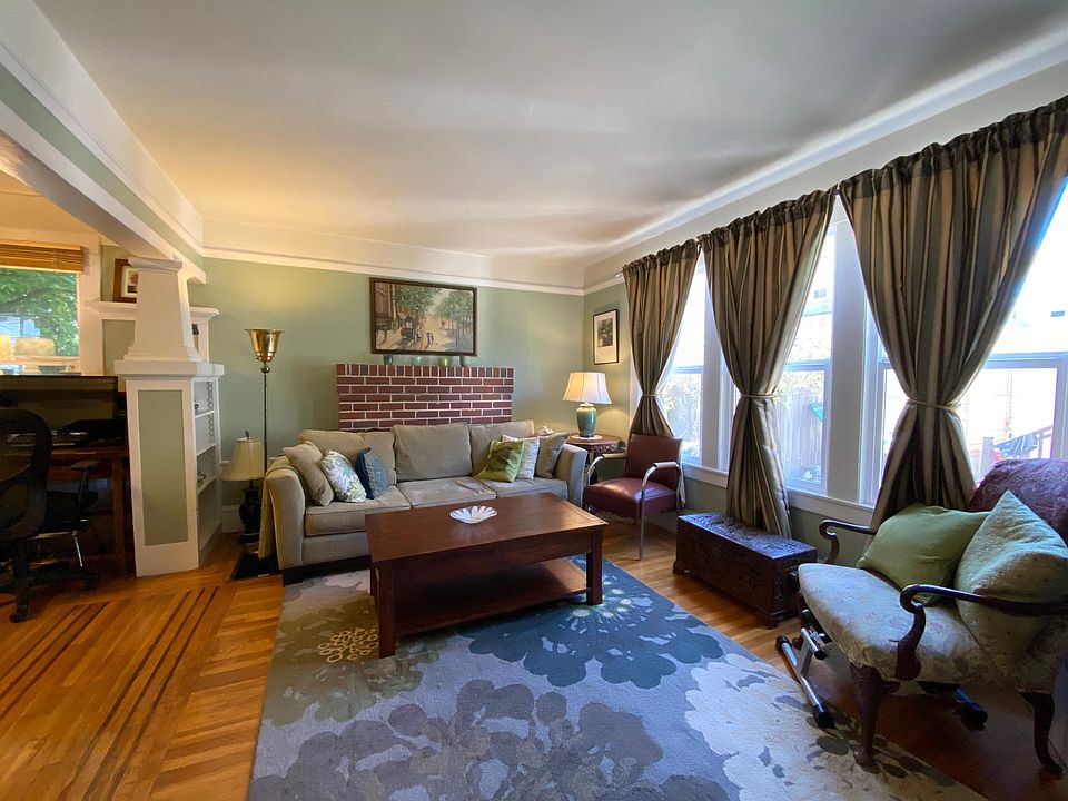 PENDING - WE ARE REVIEWING CURRENT APPLICATIONS A THE MOMENT . $1,000 off 1st month's rent for applicants willing to sign by June 10th. Online Applications are now available via Zillow. A large 1 bedroom, well-maintained cottage fully detached from neighbors. Formal living room and dining room built with quality hardwood floors, built-in cabinetry and shelving and architectural detailing. Separate kitchen with pantry, laundry room and rear exit. Shared garden patio. Bathroom has shower stall (no tub). Access to bathroom is through bedroom. Bedroom has ample storage with 2 closets. Double paned windows with screens throughout. Decorative brick fireplace. Bedroom is 11.5ft. x 10.5ft. OPTIONAL: - STORAGE SHED large enough for bikes $100/mo - DISHWASHER can be INSTALLED at $30/mo - NEW INTERIOR PAINT COLORS possible at tenant's expense. DOGS & CATS: okay with application. TOURS: Property can be viewed from the exterior by appointment (TEXT or EMAIL) After JUNE 1st, can be viewed from the interior. LOCATION is great. Convenient access to Posey tube & Park Street Bridge. 3 GREAT neighborhood parks within walking distance! Just 2 blocks from the bike trail that will eventually span the island. Target, Luckys, Safeway all less than 5 minutes drive away. Photos shown furnished. Unit will be rented UNFURNISHED. We pride ourselves in taking care of this unit as if we lived in it. We believe that landlords help make Alameda a great place to live when they treat tenants conscientiously and as fellow neighbors. Owner pays for trash & sewer. Tenant pays for gas, water & electricity.