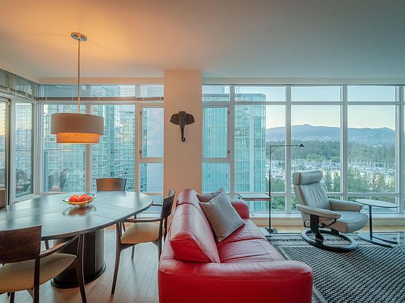 Live at Bayshore Gardens, and be connected to this beautiful waterfront community and quick access to Stanley Park. Living in Coal Harbour is at a premium here at Bayshore, with restaurants and amenities just steps from the lobby entrance. Be greeted by a 24/7 concierge, ready to assist with anything you require. This 2 bedroom suite offers stunning views of the North Shore and marina life. Watch the sun cast its orange glow across the water with from the 15th floor home. A den, a nook and a spacious living area all compliment this remarkable sky home (wine fridge included). The feeling of luxury is throughout this building and home, with an outstanding attention to detail that make this tower feel brand new. Make sure to watch the video. AIR CONDITIONED!