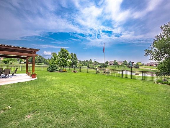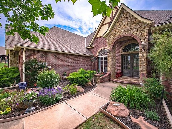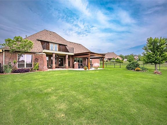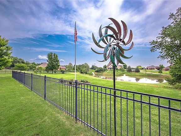 1.44 Acres of peaceful Country Living with all the luxury comfort of city amenities close by. This 3 bedroom+office, upstairs bonus room, 2.5 bath, 3-car oversized garage retreat sits perfectly on the 1.5 wooded acres overlooking a large tranquil pond complete with a fountain water feature. Home is a split floor plan with the Main bedroom hosting a spa-inspired whirlpool, vast walk-in closet and double sinks. Kitchen is a chef’s dream with gas built-in range, pantry, granite island and countertops, where family and friends can all gather in the large eat-in area or around the breakfast bar that opens to the living area complete with a cozy gas log fireplace. Use your creativity to turn the oversized upstairs bonus room with exquisite balcony views into a theatre room, playroom or anything else your heart desires. As if that were not enough, enjoy morning coffee/breakfast under the covered cedar pergola overlooking the fishing pond while taking in those breathtaking Oklahoma sunrises. Backyard also features a gas fireplace and outdoor gas grill. This highly desired home in Cardinal Ridge subdivision is just a few miles east of the quickly developing I-35 corridor (Showbiz entertainment center and New “Crest” opening soon) and will not last long!