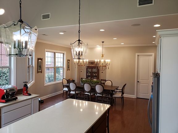 This beautifully built home features high ceilings, 2 master bedrooms for a total of 4 bedrooms and 4 bathrooms. The large entry foyer leads to an open living room with built-in bookcases and a gas log fireplace. French doors lead to the screened patio and back yard.The masterpiece open kitchen dining area features great natural lighting, quartz countertops, giant island, Jenn-Air appliances, a walk-in pantry and ample storage.Main floor laundry has front loading Electrolux washer and dryer.5 steps lead to a sitting/entertainment area and the 2nd master bedroom with luxurious bath. Closet space is amazing for both masters. An upstairs bedroom has walk-in closet and private bath. The spacious 4-car garage is a hobbyist's dream. Plenty of storage in the unfinished basement area.