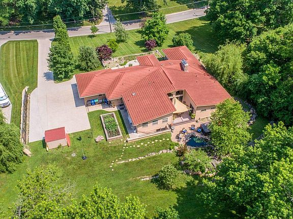 Looking for a neighborhood that has it all? You will love this sought-after brick ranch nestled in Druid Hill close to Downtown, Grays Lake, and minutes from the airport. Easy access to bike trails, farmers market and other events. Sitting on 1.28 acres of beautifully kept land are mature Cherry, Peach and Apple trees as well as established strawberry, asparagus, and other garden beds. Whether you want to entertain or have a quiet night by the pond & waterfall, this home can accommodate. The updates inside are endless. An addition of a master suite, expansion of the living room, dining and kitchen as well as game room was done in 2007. When updated, they also added the same square feet to the basement which was finished into another bedroom, bathroom, & living room with walkout access. There are 4 other bedrooms and laundry on the main floor. Also, Geo-thermal heating and cooling as well as a roof made of recycled steel that can withstand hurricanes...This is a must see