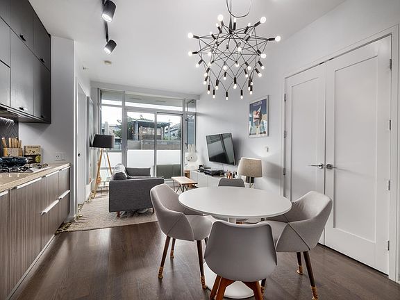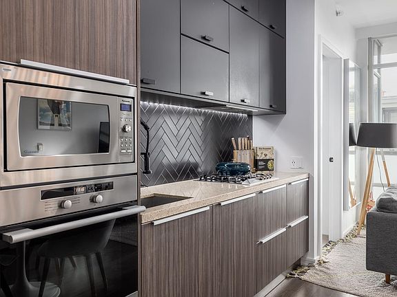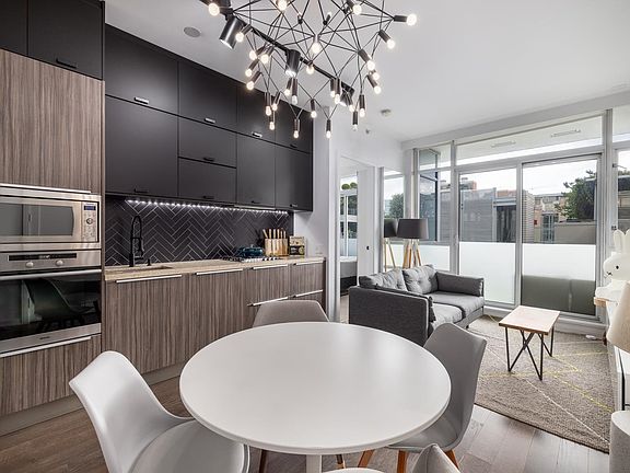 Welcome to this perfect One Bedroom home in Olympic Village with no wasted space, an abundance of storage & over sized patio! This 506 SqFt One Bedroom home offers Eastern exposures over the quiet courtyard away from the neighbourhood traffic and abundance of local amenities. Sleek Kitchen & Bathroom upgrades set this unit directly apart from the competition. The Kitchen upgrades include brand new herringbone tile backsplash detail with upgraded kitchen cabinet storage to the ceiling. Additionally you are offered a completely upgraded bathroom with new tile work throughout and new floating vanity with glass enclosed shower. The unit flows smoothly from end to end with an abundance of early morning & day light pouring in. The patio is large and sun drenched with BBQ's allowed.