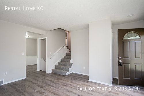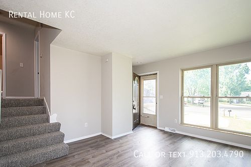 Lots of space and all updated decor highlight this Olathe split level. The main level has the living room and kitchen/dining with walk-out to a balcony overlooking the backyard. The next level up has two nice size bedrooms and a full bathroom. A half level above that is the 3rd bedroom. The garage level has a family room with fireplace and walk-out to wood deck. The lowest level has the 4th bedroom with a walk-out to the patio, plus the second full bathroom and laundry-utility room. All of the living space except the upper 3 bedrooms, have stylish new hardwood-look vinyl plank flooring. The home includes a single garage with double driveway. Located on a cul-de-sac just south of I-35 and 135th near Mid-American Nazarene Univ, FAA center, and Garmin headquarters. SHOWING STATUS: Occupied, showings by appointment with 24+ hour notice - rental application required before showing - but no application fee until you decide to lease AVAILABLE: September 8th LEASE TERM: Lease ending in June or July TENANTS: No more than 2 Non-related adults PETS: One small pet considered FENCED YARD: No BASEMENT: Finished APPLIANCES: Refrigerator provided, not washer and dryer AMOUNTS DUE - When you decide to lease: $40/adult, non-refundable application fee - At lease signing: Security Deposit (equal to one month rent) and Pet Deposits - At move in: One full month rent and rekey fee QUALIFICATIONS - Pre-tax income (combined for all tenants) over $6,000/mo - Equifax FICO credit score at least 640 - No debts in collection - No non-discharged bankruptcy - No balance due to current landlord or utilities - No prior evictions - No felonies, or violent misdemeanors Application Fee: $40/adult Non-refundable