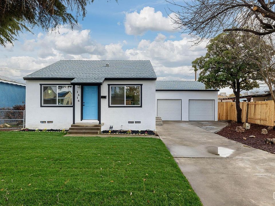 Located in a popular NOR neighborhood this beautifully remodeled home is sure to please the most discerning buyer. From the moment you step inside the welcoming blue front door you'll be awestruck by a warm and stylish interior that features new energy efficient dual pane windows, luxury wood plank vinyl flooring, fresh paint, new 6 inch baseboards, plush carpeting in the bedrooms and modern black fixtures throughout, including ceiling fans in the living room and all bedrooms. The heart of the home truly is the modern kitchen that has been stunningly renovated with sleek white cabinets, quartz counter tops, stainless steel appliances, and a subway tile backsplash. The amenities do not stop outside as the home features contemporary exterior paint, a large covered patio, front and back irrigation, a newly built fence, fresh sod and a new central HVAC unit. All of this plus a comp roof that was installed less than 2 years ago make this home sure to sell fast so go see it today!