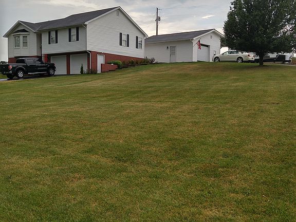 Stop paying that storage building fee for your boat or RV and have a place to store all your tools. Detached garage workshop and shed for recreational toys! Nice country home on 2 acres just minutes from I-64 or Mt. Parkway. Over 2000 sq. ft. of living space with 3 bedrooms, 2 baths on a basement with 2-car attached garage as well as a large detached garage. Custom oak kitchen cabinets w/lots of storage. New heat pump, dishwasher, refrigerator, & water heater less than 2 years old. Large private deck with view of farmland in back. Poured concrete basement foundation. One owner, move-in ready, great place to live. Room to park your RV in covered storage area behind detached garage. Both garage floors have been painted with epoxy paint. Exterior garage has attic storage, work area and metal ceiling.