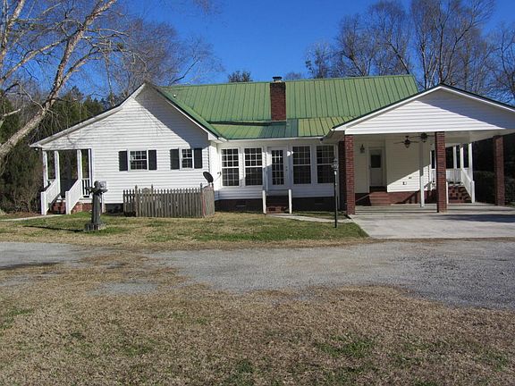 Beautiful & Private 4-acre estate with large pond fenced yard & pasture back a long tree lined driveway. Home is 2364sf 1-story home with a whopping 1200sf 8' deep wrapped porch & metal roof. Featuring:re-finished wood floors through 3/4 of home*fresh paint*leaded glass door to large foyer*family room with high cathedral ceiling fireplace wet bar & door leading to a bright/cheery sunroom with great views of the property*large eat in kitchen with lots of cabinets & solid surface counters big island high faucet & big breakfast nook with bay window*dining room with chair/crown & picture moldings* master suite has door leading to sunroom tile in bath his/hers vanities garden tub shower & huge walk in closet*2 good sized guest bedrooms with large closets*nicely appointed guest bath* powder room with pedestal sink*large laundry room with utility sink installed in a large vanity with counter space to fold clothes and lots of cabinet storage space*JennAir cooktop in island double oven warming drawer dishwasher and refrigerator all convey*2 car carport*beautiful large stocked pond with adjustable water level and a unique clubhouse*several special peaceful landscaping niches with a bench or swing spread through the property *fenced pasture and zoned for horses if desired* multiple water spigots located on property used for drinking irrigation washing or pond filling*16x24 two story barn with covered porch plus a full stand up second story loft barn has its own 200 volt electrical service separate from the home (barn could be workshop hay/feed storage potting shed studio etc)*12x15 storage shed with roll up door plus front and rear covered patios*large fenced area for pets or play*beautifully landscaped including trees shrubbery acres of lawn and natural fencing (tall shrubbery) in key locations which allows almost complete privacy*BEST FEATURE OF ALL IS THE QUIET!!!