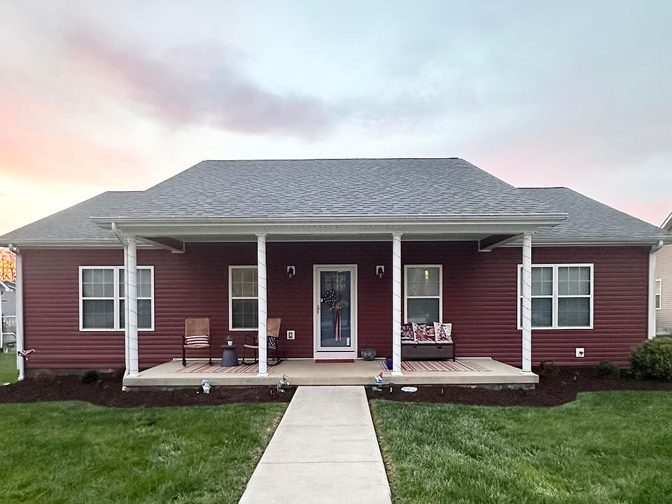 . PRICE IMPROVEMENT!!! Welcome to country living close to city life on a quiet, dead-end street. This home is only 4 yrs old with easy access to the Bluegrass Parkway, 127, and interstate 64 so Lexington, Frankfort, Georgetown and Louisville are close. Needless to say, the beauty of the winerys and distilleries are just within minutes. As you pull up, you'll notice 3 nice-sized, side-by-side parking spaces just added last year, which makes parking a breeze. Enter the front door to the open floor plan. The floors are REAL cherry oak hardwood in the main living area, including the bedrooms. The kitchen has stainless steel appliances (which remain with the house) with a gorgeous island and new subway tile backsplash. The master is huge with an ensuite that has a remodeled walk-in shower with rainshower-head and around the corner is the walk-in closet. The other 2 bedrooms are large and the second bathroom has a recently updated shower with a soaking tub. Off the kitchen is a big laundry room with space for extra storage. Through the double back doors is a recently enclosed, covered back deck(decking is made of composite wood) allowing for extra space to relax 3 seasons out of the year. Walk down the stairs to the well-groomed, fenced backyard with a walkway to the large patio AND 10ft by 20ft outdoor building which provides extra storage. This home is move-in ready!!! So, come out and take a look. It is sure to NOT disappoint.