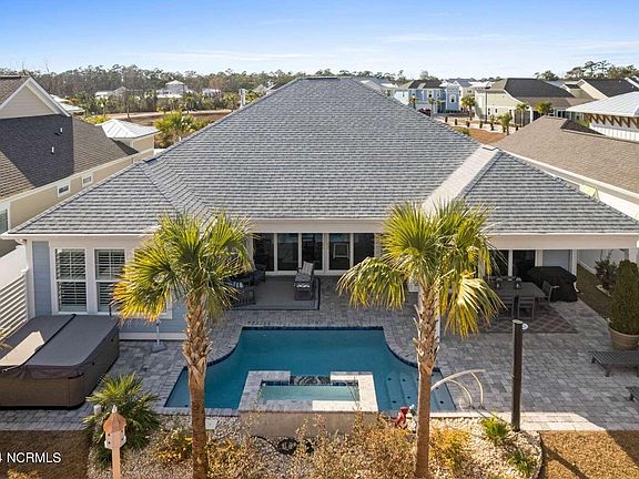 Welcome to 1616 Harbour Place Dr located in the upscale neighborhood of Kingfish Bay. A beautiful and well-maintained 1 story home with 3 bedrooms, 3 bathrooms and 2 one car garages. The outdoor living area is gorgeous. The highlights are a salt water pool with waterfall feature and a heater/chiller. There is a 6-person Bullfrog A Series hot tub. The expansive paver patio has plenty of room for relaxation or tanning and al-fresco dining beneath the covered Lanai. Upon entering the foyer, be prepared to say WOW! This Aruba I floor plan has so much to offer. Open concept. LVP flooring is throughout. The living room has a fireplace with built ins. Extra wide 15' sliding doors overlook the outdoor seating area and pool. The nicely appointed kitchen has quartz countertops, large island with a built-in microwave, a farm sink with herringbone tile backsplash, and under cabinet lighting. The dining area has 12' sliding doors overlooking the covered Lanai. A tray ceiling is in the living room, dining room and owner's suite. The owner's bedroom is spacious enough for a king bed. The owner's bathroom has dual vanities, a tile walk-in shower and separate room for the water closet. The closet has custom built ins with areas for hangers, shelves, and drawers. A guest bedroom has an en-suite bathroom, with a tile walk-in shower. The hall bathroom has a tub with a tile surround. There is a third bedroom with a walk-in closet. The front of the home has a view of the pond. There are plantation shutters, cove molding in all living areas, a 24kW whole house generator, Rinnai tankless water heater, utility sink in the garage, and polyaspartic garage floor coating. The furnishings are negotiable. Kingfish Bay is an amenity rich, private, and gated community. An oceanfront beach house is located at Sunset Beach. There is a large community pool and clubhouse, fitness room, Riverfront Park with a pier and kayak launch located along the Calabash River.