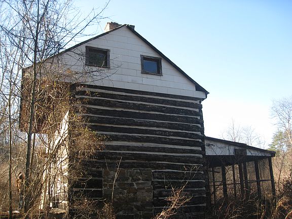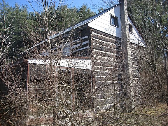 Historic 200- year- old two story log cabin at the corner of Sheepskin Hollow Road and Log Cabin Road on a 4.35 acre lot. It is located off Rt. 522 in Northern Fulton County, just south of Fort Littleton and the Pennsylvania Turnpike. The cabin has 2 stories plus an attic with a ceiling high enough to provide useful space - each floor is 20 x 30 feet. On the first floor there is a living room with a stone fireplace and large kitchen. On the second floor there are two bedrooms and a full bathroom with tub. There is also a back porch running the full length of the cabin. The log cabin is relatively original, but does need significant renovation. There is also a nice pond with spill way on the 4.35 acre parcel. Other adjacent wooded land parcels (one including a brick house) are also being sold which could total up to 154 acres (see the lot plan view below.)