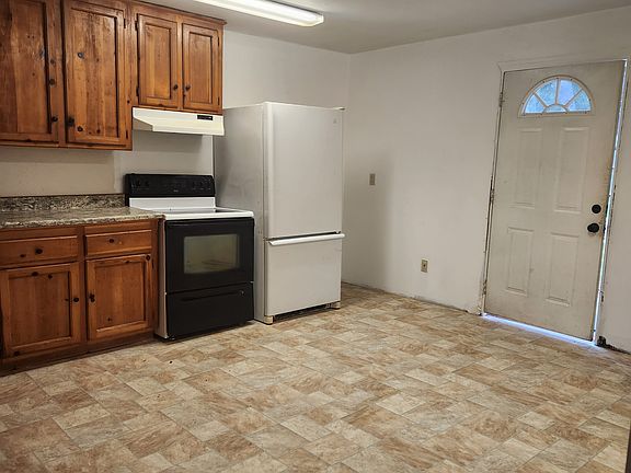 Home has ductless heating and air. Livingroom has 2 ceiling fans, large front window. Kitchen is rather large and is equipped with stove, refrigerator and garbage disposal. Both bedrooms have wood flooring and wall heaters. Bathroom has a wall heater and linen closet with a tub/shower option. Garage is very large with access to the living-room. Back yard is large with a fire pit.