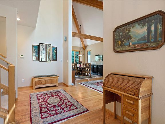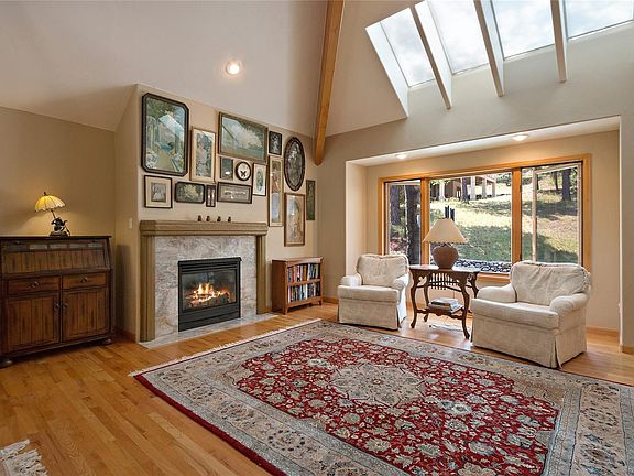Discover the Ridge at Hiwan lifestyle. This 5 bedroom home bestows an ultimately private living experience combined with the conveniences of North Evergreen. Nestled at the end of a cul-de-sac on a gentle scenic acre surrounded by a magnificent backdrop of conifers and aspen. Amenities include 3 gas fireplaces, gleaming oak or tile floors, large windows, and a main level family room open to the kitchen and deck. Walkout lower level features 9' ceilings, a 5th bedroom, office, full bath, rec room with fireplace, billiard area and a storage room. Vaulted master bedroom holds a king bed with room for seating, his/hers walk-in closets, 5 piece master bathroom. Completing the upper level are three additional bedrooms offering Jack and Jill or en suite baths. The open kitchen, complemented with SS appliances, a dining nook and breakfast bar seating. The main level laundry/mud rooms are a plus for convenience. Neighborhood amenities include walking distance to multiple shopping and dining venues. The main level 3-car garage is amply over-sized. Recently re-roofed and recent exterior paint. Under10 minutes to I-70, with easy access to Denver or world class skiing. Schools with corner bus service are nearby. Main Sq. Ft.: 1,772 Upper Sq. Ft.: 1,758 Basement Sq. Ft.: 1,733