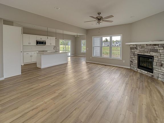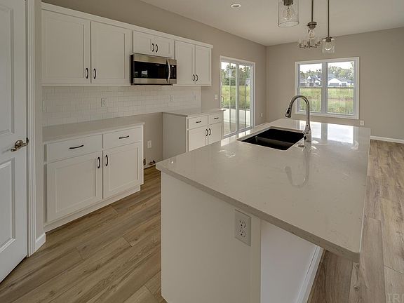 Carriage Place Homes by Jeff Godfrey features an open, split bedroom ranch in the NWAC subdivision - Grand Pointe. This home accommodates a spacious Great Room with a corner stone fireplace. The Kitchen has ample custom, white maple cabinets, a large island, quartz counter-tops, glass tile back splash, nice walk-in pantry, and new stainless steel appliances. The dining area has a sliding door that opens to a covered porch. A large master suite has a private full bath with 2 separate vanities and a large walk-in 2 story closet. Two more bedrooms plus an additional full bath complete this floor plan. This home also features a nice sized laundry room, tons of storage space throughout, vinyl plank throughout main living areas, trendy colors w/ white trim plus an energy efficient HVAC system. Landscaping package included in sale. Home to be complete August 2022.