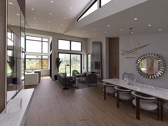 Nestled along the upper Cullasaja River with 400+ feet of river frontage, this new home features a sleek mountain-modern design with 4.58+/- acres of picturesque forest to call your own. Enjoy your own private estate property or build on any of the additional building sites for a quaint family compound or with town approval, a small subdivision. Located on the outskirts of town limits you will feel miles away from everything but are only a couple of minutes to downtown Highlands and all it has to offer. It's a very special and sought after combination! The home features one level living with an open floor plan that overlooks the water, an owner's suite with fireplace on one side and two guest bedrooms with ensuite bathrooms and a powder room on the other along with laundry room and mudroom, high ceilings with a modern pitch and fireplace in the great room, a custom built outdoor jacuzzi and many more luxury comforts. Please note that while the home is in construction virtual renderings are being used to help visualize what the home will look like when finished but these renderings may not be a perfect depiction of the final product upon completion. Call, text or email for additional details.