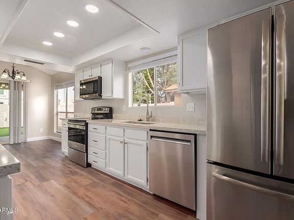 Great opportunity to be the first to reside in this fabulous high-end remodel! Enjoy this 1673 sq.ft, 3 bedroom/2.5 bath split floor plan home! Featuring Luxury Vinyl Plank floors thru-out, Quartz countertops, Marble showers, new custom paint, Stainless Appliances including a French Door refrigerator and a new KitchenAid quiet 36db dishwasher, new blinds, new faucets, sinks, toilets, medicine cabinets, ceiling fans, epoxy garage floor. Home is energy efficient with all LED lighting! Trane A/C. Relax in the backyard and improve your short game on the putting green! Enjoy the evenings around the firepit area or just hangout under the full length covered patio! Community features a pool and green space, and just down the street is Brooks Crossing Park!