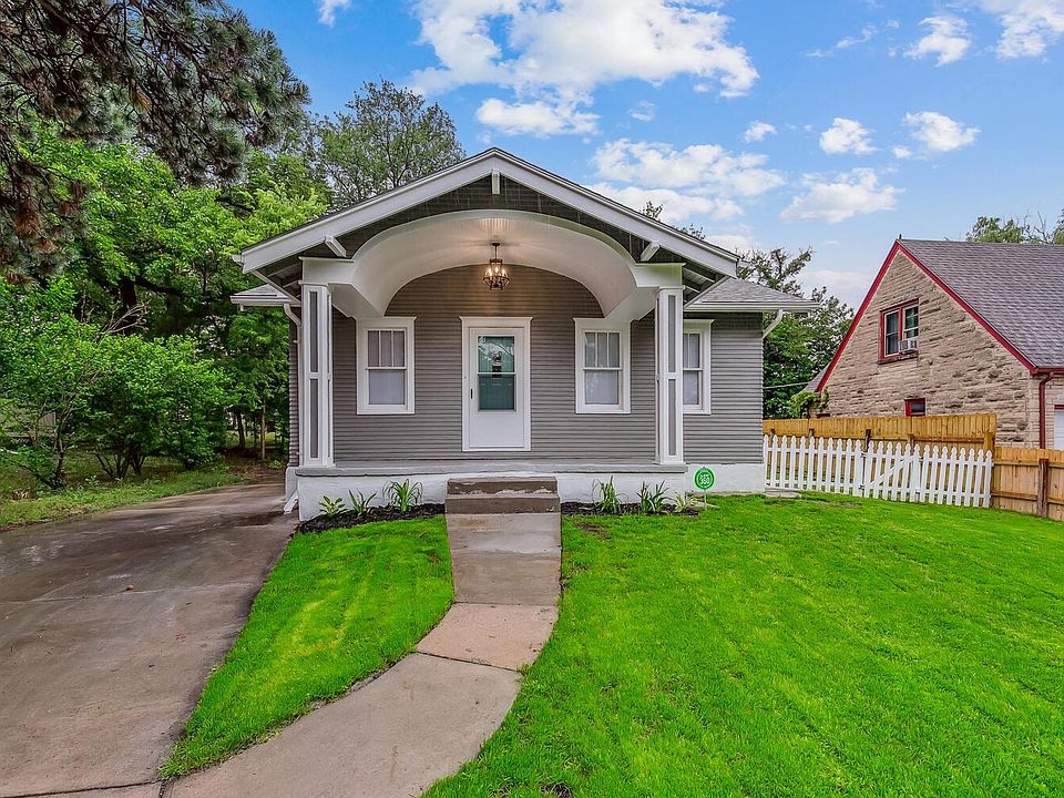 You want Cozy, here it is! This recently remodeled bungalow is just minutes away for Wichita State University. You instantly notice the wide front porch where you can sit in the evening and enjoy the warm summer nights. A lot of detail went into this remodel, you can feel the quality and care that went into reviving this 1920s home. Newly refinished hardwood floors, the interior and exterior have both been repainted, new light fixtures throughout, the a/c and furnace are both less than six months old, bathroom has been gutted and completely refinished. If you want a chance at this, schedule your showing today.