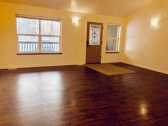 The last retirees who enjoyed this one-story home are moving on so we are looking for quiet neighbors to replace them. The location is perfect for quick access to groceries and the Parks Hwy without having the feel of a busy setting. Lake access is nearby. This is a duplex with the owner living on the other side. Pets are on a case by case basis and cost extra. This price is for a one year lease. Gas and electric are extra. Available June 8th. Owner provides snow removal and water.