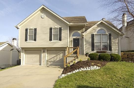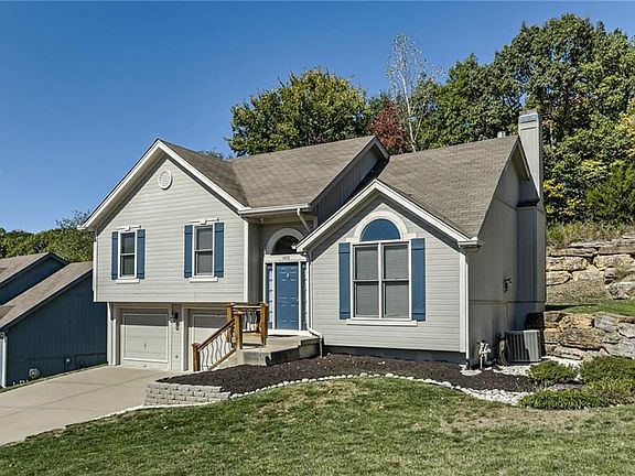 Gotta see this quaint setting nestled in KC. The backyard is waiting for the exterior lighting with the deck, patio and rock ledge! Front to Back split that lives large with all the vaulted ceilings, upgraded features include concrete countertops, tiled bathrooms, newer appliances. Fireplace in Livingroom. Master suite with walk-in closet. Basement is finished with bath and office space built in. Garage is oversized and a must see with tons of shelves and workshop area.