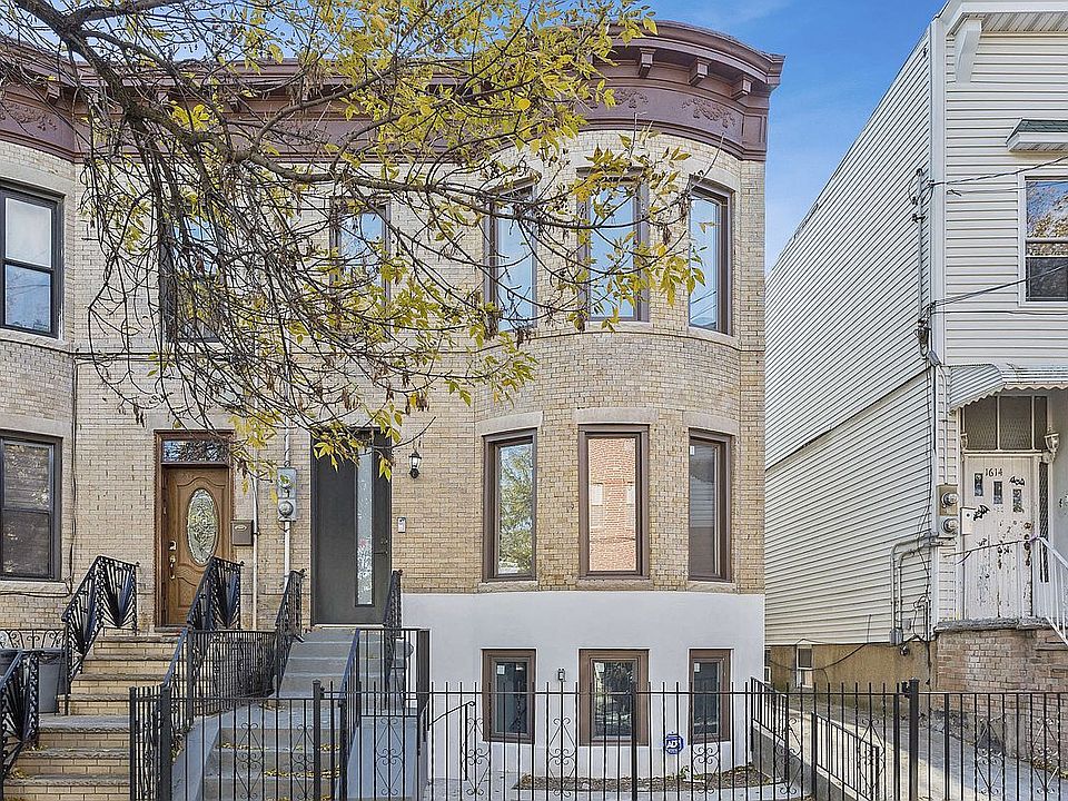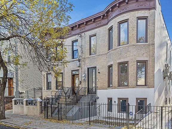 Classic bow front Ridgewood townhouse, modernized from top to bottom. This one of kind home has been tastefully renovated while the traditional brick exterior has been carefully preserved. This property features 3000 square feet of legal living space and an almost unheard of private driveway. Perfectly situated walking distance from both the M and L trains. Semidetached with an extra wide 27x100 lot. This home has sunny eastern, southern and western exposures and oversized casement windows to allow maximum natural light. Stunning owners duplex featuring three bedrooms including master bedroom with master bath, second full bathroom, and a reading room/office space that's convertible to a 4th bedroom. Sunny first floor has an open floor plan with high ceilings, living room, dining area, breakfast nook and a European inspired custom kitchen with marble countertops and generous island. Rough hewn columns, additional full bathroom and washer/dryer in the private walk-in space. Exit to the spacious, fenced rear yard and private balcony via the sliding glass doors in the kitchen. Garden level legal rental unit includes a living room, granite kitchen and bedroom. This home has been completely gut renovated. With a brand new roof, updated electric and Jedwin windows throughout, this home is move in ready. Perfect for owner/user with split units throughout, making for a great rental investment.
