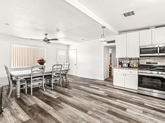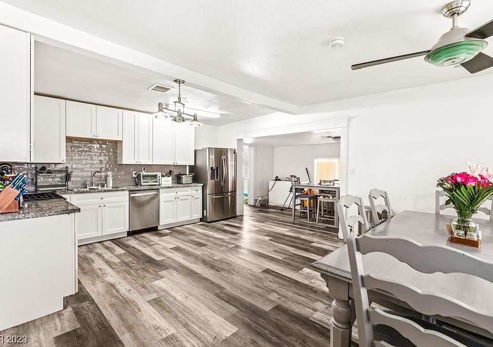 NO HOA-Newly remodeled, single-story home with spacious backyard and RV PARKING. Quick access to interstate 93 and minutes from the entertainment, shopping and casinos of downtown Las Vegas! Cozy wood burning fireplace entertainment possibilities while enjoying a bright kitchen with granite counter tops. Don't miss this rare single story, 4 bedroom home with no HOA. New Roof in 2018.This will sell fast!