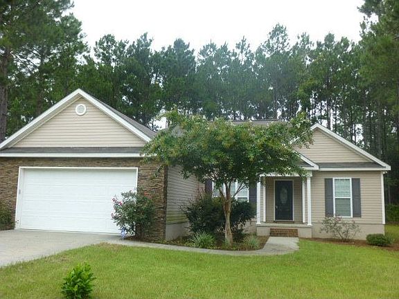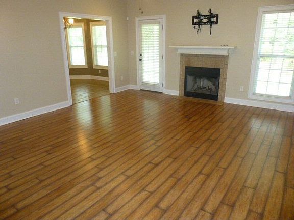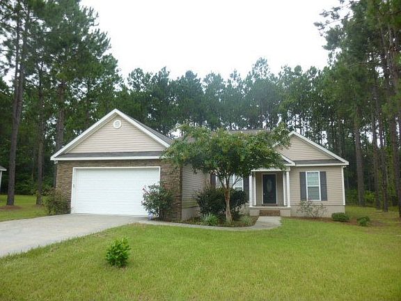 Great curb appeal with stacked stone accents and pretty flower beds. Located at the end of the road so you have privacy. Interior floorplan is very desirable with a den with fireplace, well-appointed kitchen with dining area, formal dining room, large master suite with extravagant tray ceiling, master bathroom with separate shower and jetted tub as well as a double vanity and large walk-in closet, 2 guest bedrooms and a guest bathroom. Flooring is laminate wood and tile throughout so it's very hypoallergenic. Upgraded appliances and fixtures. Outside, there is a large covered back porch that overlooks the private backyard which borders a wooded area. Great price, great house!